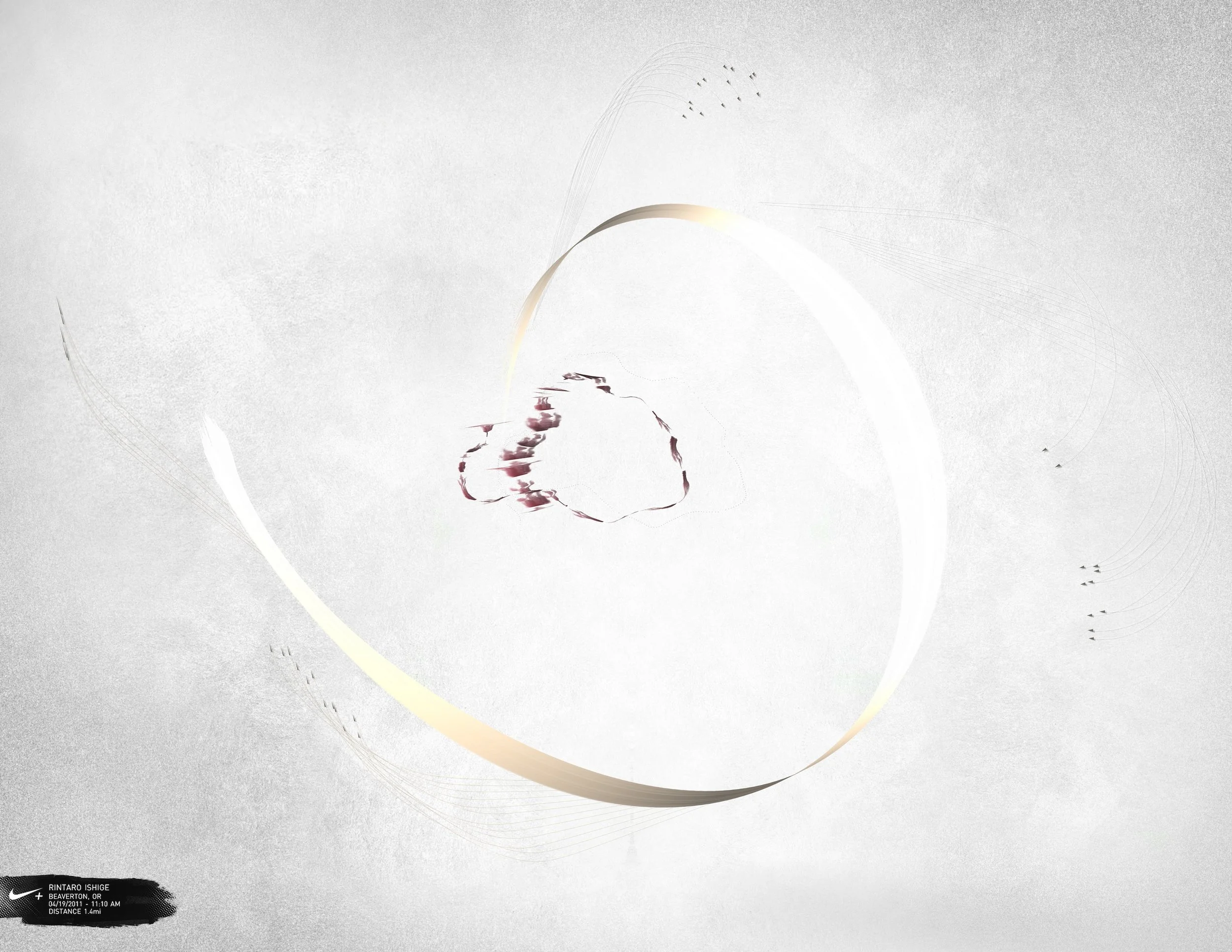 For the launch of the Nike Free Run+ 2 City Pack series, YesYesNo was invited to develop software that would allow runners to create dynamic paintings with their feet using their Nike+ GPS run data. During the two day workshop at Nike headquarters, we invited the participants to record their runs and then using our custom software we imported the metrics from their run, to create visuals based on the speed, consistency and unique style of each person's run.